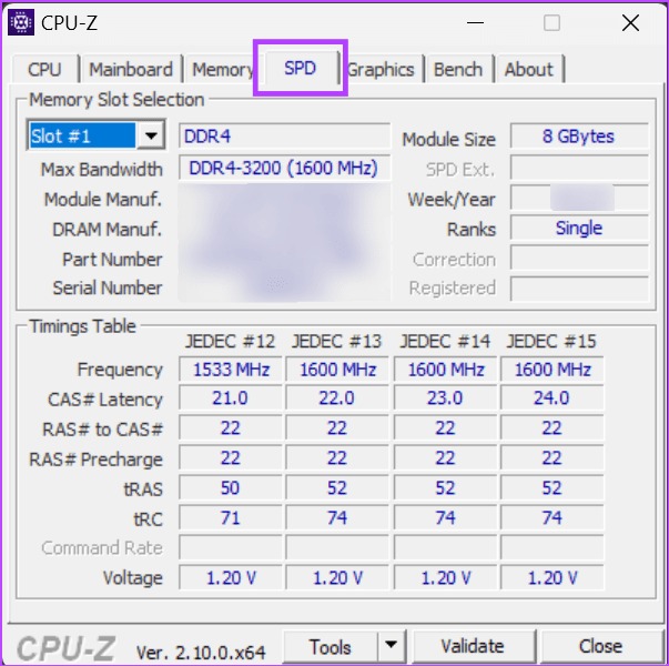 در حالی که میتوانید جزئیات کلی RAM را از طریق Task Manager یا Command Prompt پیدا کنید، برنامههای جانبی مانند CPU-Z میتوانند اطلاعات دقیقتری را در اختیارتان قرار دهند: