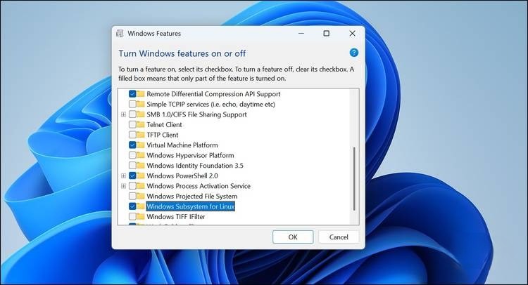 پس از تکمیل نصب WSL، مهم است که کامپیوتر را ریستارت کنید تا تغییرات اعمال شوند. حالا، زمان فعال کردن Windows Subsystem for Linux از Control Panel است. عبارت Turn Windows features on or off را از منوی Start جستجو کنید، Enter را بزنید، و Windows Subsystem for Linux را فعال کنید. کامپیوتر را دوباره ریستارت کنید.