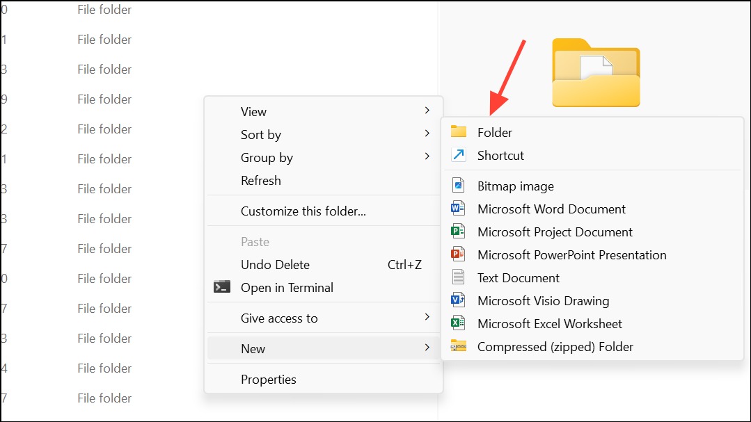 مرحله ۲: در پوشه راستکلیک کنید، گزینه New > Folder را انتخاب کنید و نام آن را Desktop بگذارید.