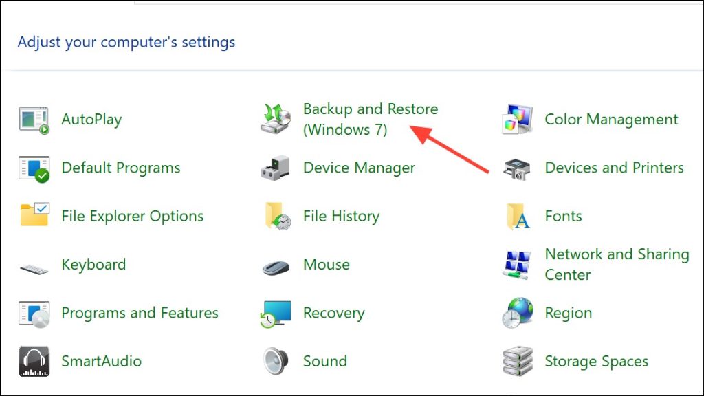 مرحله ۱: Control Panel را باز کنید و به System and Security > Backup and Restore بروید.