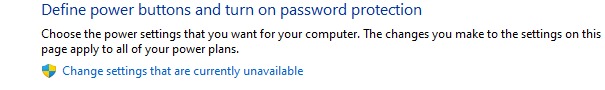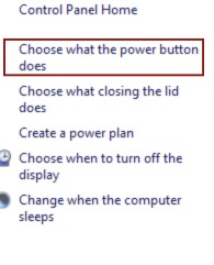 ۲- از سمت چپ روی Choose what the power buttons do کلیک کنید. سپس روی لینک آبیرنگ Change settings that are currently unavailable در بالای صفحه کلیک کنید (نیاز به دسترسی ادمین دارد).
