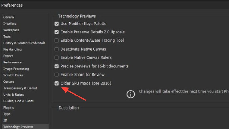 پس از اعمال هرگونه تغییر، فتوشاپ را ریستارت کنید. برخی ویژگیهای پیشرفته GPU ممکن است در سختافزارهای خاص ناپایدار یا پشتیبانینشده باشند، و تغییر این گزینهها میتواند سازگاری را بازگرداند.