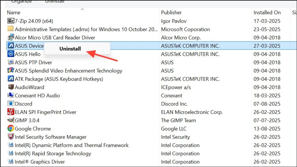 برنامهای که خطا را نشان میدهد پیدا کنید، روی آن راستکلیک کنید و “Uninstall” را انتخاب کنید. هرگونه درخواست را تأیید کنید.
