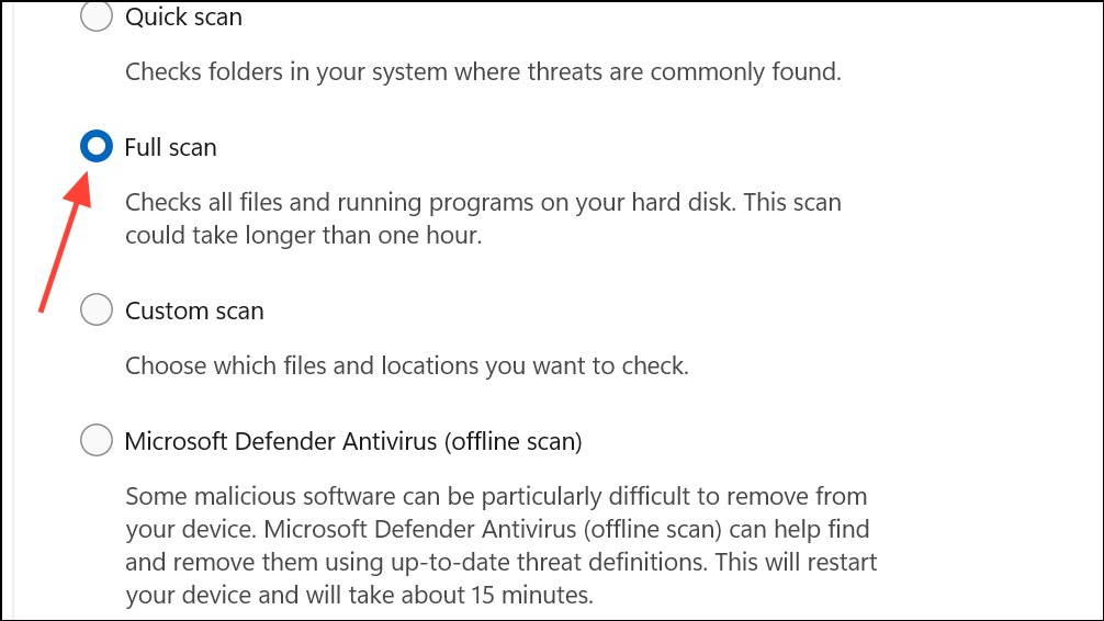 از یک برنامه آنتیویروس معتبر (مانند Windows Defender، Avira، یا Panda) برای انجام اسکن کامل سیستم استفاده کنید. دستورالعملهای آنتیویروس را برای قرنطینه یا حذف تهدیدات شناساییشده دنبال کنید.