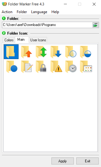 از تب color می توانید رنگ فولدر را عوض کنید و از تب main می توانید علامت و نمادهایی را بر روی فولدر قرار دهید.