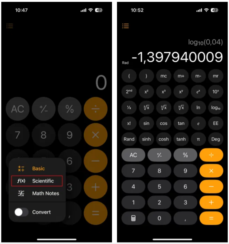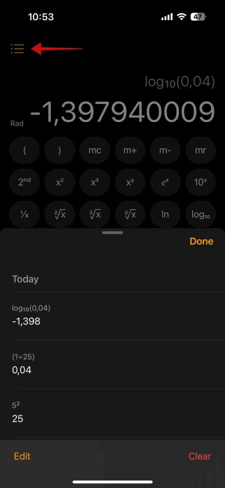 دسترسی به محاسبهگر علمی در iOS