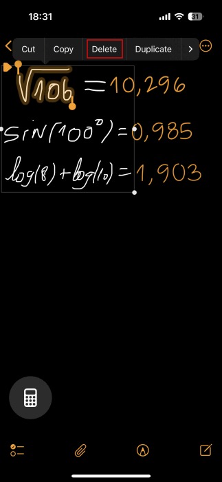 دسترسی به محاسبات از برنامه Notes در iPhone