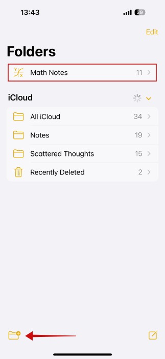 - برنامه Notes را در دستگاه iOS خود باز کنید و پوشه Math Notes را بررسی کنید. در اینجا همه چیزهایی که تا حالا کار کردهاید را خواهید یافت.