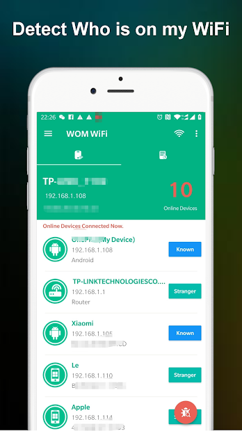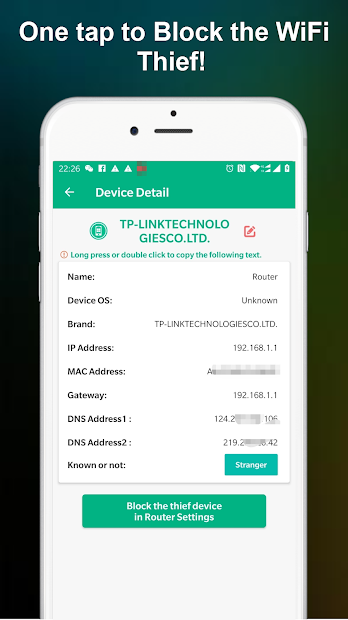 در برنامه Who’s On My Wi Fi عملکردها محدودتر از NetX هستند. این نرم افزار هم مثل قبلی به شما می گوید چه کسی به شبکه شما متصل است، توصیه می کنیم هر دو برنامه را نصب کنید اما از دومی برای انجام تجزیه و تحلیل استفاده خواهیم کرد. برنامه Who’s On My Wi-Fi را باز کنید و به وای خودتان متصل شوید، در عرض چند ثانیه، نرم افزار تمام دستگاه هایی که از اتصال اینترنت شما استفاده می کنند را نشان می دهد. از اینجا می توانید توسط گزینه Block the thief device in Router Setting افرادی که از وای فای شما دزدی می کنند را شناسایی و بیرون کنید. برای این کار باید اطلاعات شبکه خود را وارد کنید.