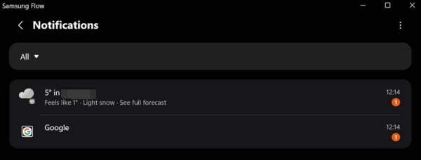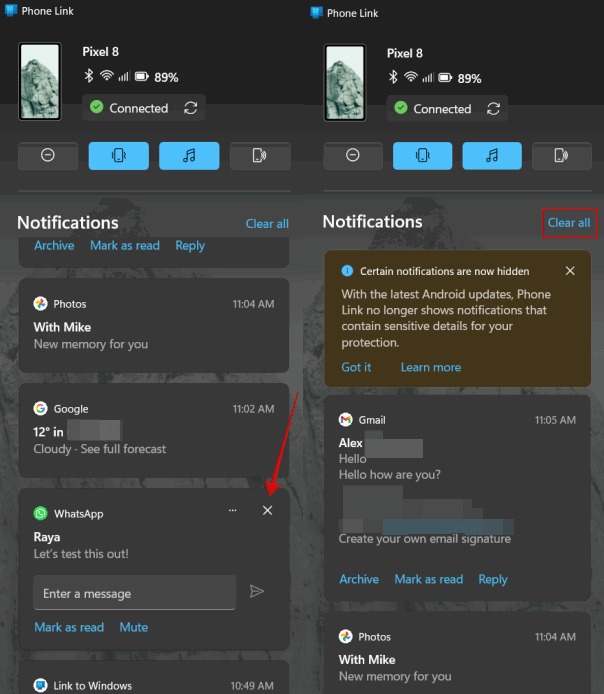 حالا اعلانها در ویندوز ظاهر میشوند. با زدن علامت X روی هر اعلان، آن را پاک کنید (این کار باعث پاک شدن اعلان در گوشی هم میشود).