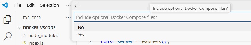 گزینه Yes را برای شامل کردن فایل Docker Compose انتخاب کنید.