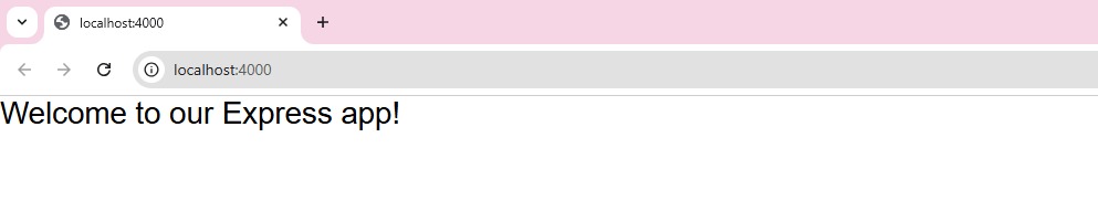 این کد یک اپلیکیشن ساده Express ایجاد می‌کند که روی پورت ۴۰۰۰ اجرا می‌شود و هنگام باز کردن URL ریشه (/)، پیام “Welcome to our Express app!” را نمایش می‌دهد.