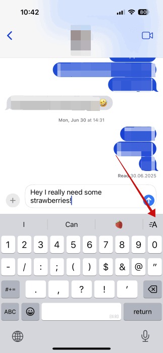 در برنامه Messages، متن خود را تایپ کنید، اما هنوز آن را ارسال نکنید. دکمه ارسال (فلش آبی) را طولانی فشار دهید.