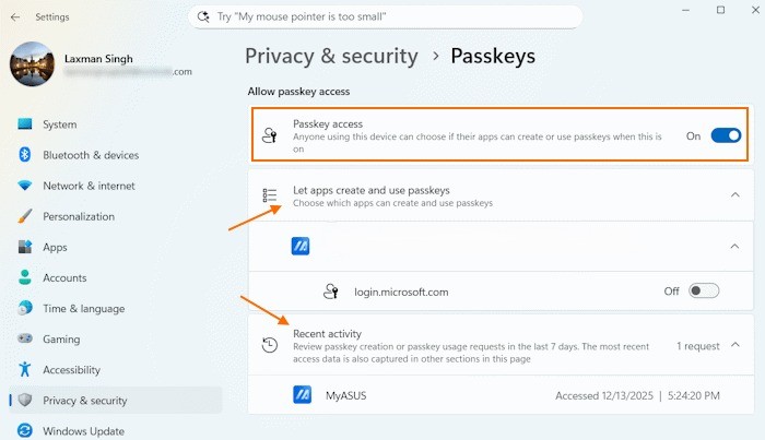نحوه جلوگیری یا مجاز کردن دسترسی به Passkey برای برنامهها در ویندوز ۱۱
