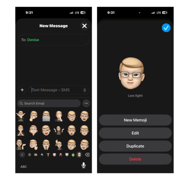 اپل مدام در حال گسترش کاربرد مموجیهاست. اگر آیفون شما از قابلیت تشخیص چهره (Face ID) پشتیبانی میکند، میتوانید از مموجیهای متحرک که حرکات صورت شما را تقلید میکنند استفاده کنید.