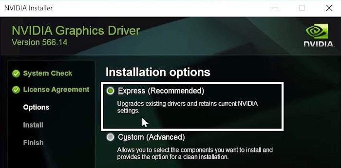 در این حالت، خودِ نصب کننده انویدیا ابتدا تنظیمات و درایورهای قدیمی را حذف و سپس نسخه جدید را جایگزین میکند.
