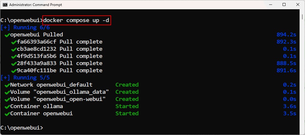 این فایل Docker Compose دو سرویس را اجرا میکند: ollama و Open WebUI. سرویس ollama از تصویر ollama/ollama استفاده میکند، روی پورت ۱۱۴۳۴ گوش میدهد، استفاده از GPU را غیرفعال میکند و دادهها را در حجم ollama_data ذخیره میکند. از سوی دیگر، Open WebUI از ایمیج open-webui استفاده میکند، پورت ۳۰۰۰ را به ۸۰۸۰ مپ میکند، از طریق URL پایه به ollama متصل میشود و دادهها را در ولوم open-webui ذخیره میکند. هر دو سرویس تا زمانی که متوقف نشوند، بهطور خودکار راهاندازی مجدد میشوند و volumeهای نامگذاریشده دادهها را پایدار نگه میدارند.
