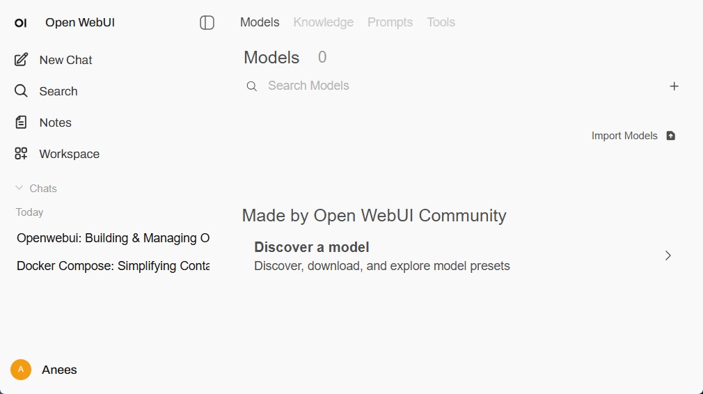 Open WebUI فقط رابط کاربری را فراهم میکند. شما همچنان باید حداقل یک مدل هوش مصنوعی محلی نصب کنید تا کار کند. خوشبختانه، Open WebUI این کار را از طریق Ollama آسان میکند. میتوانید مدلهای مختلفی مانند llama3، mistral، gemma یا vicuna را بسته به نیازها و منابع سیستمی خود نصب کنید.