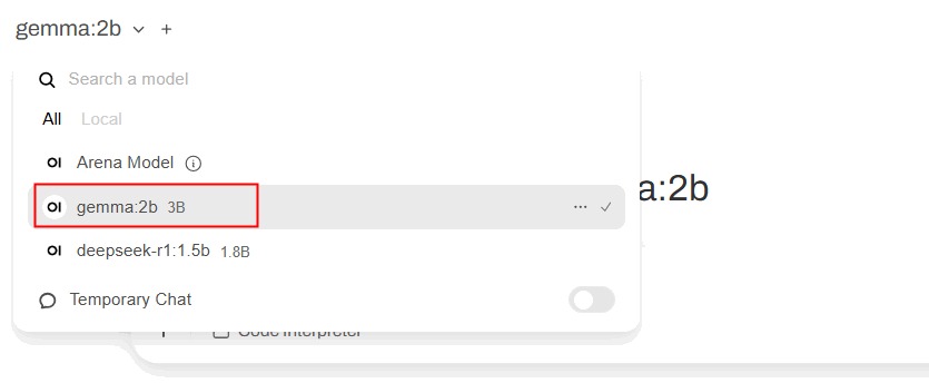 حالا میتوانید بهسادگی یک مدل را از رابط Open WebUI انتخاب کنید و برای پرسوجوهای خود از آن استفاده کنید.