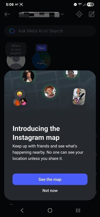 روی Map درست زیر کادر جستجوی Meta AI ضربه بزنید.