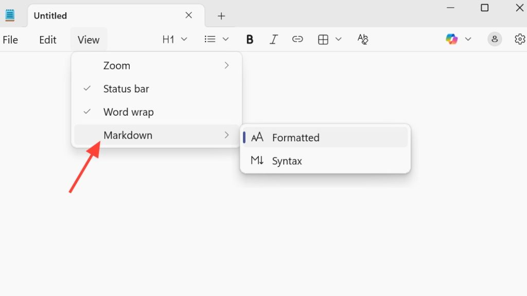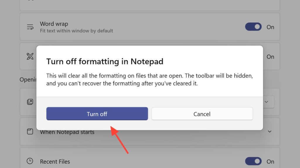 اگر ترجیح میدهید نوتپد شما همان ظاهر کلاسیک و ساده “Plain Text” را داشته باشد، میتوانید قالببندی را غیرفعال کنید.