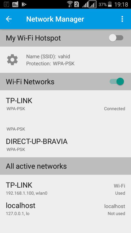 Wi-Fi Networks لیست مودم ها و شبکه هایی است که در اختیار دارید را نشان می دهد ولی اگر مودم ندارید یا در مکانی هستید که به مودم دسترسی ندارید خوتان می توانید با فعال کردن My Wi-Fi Hotspot شبکه ایجاد کنید.